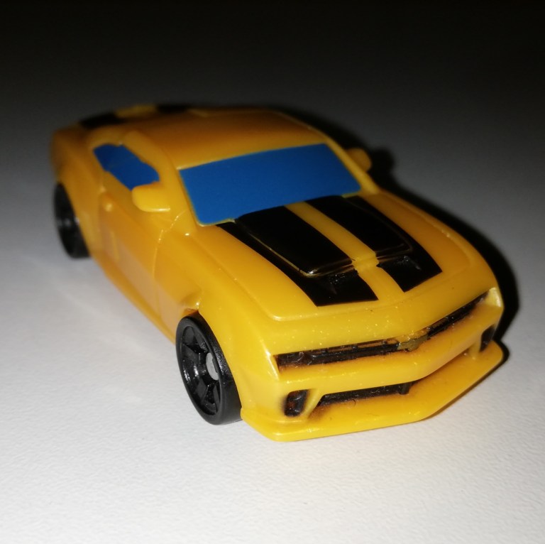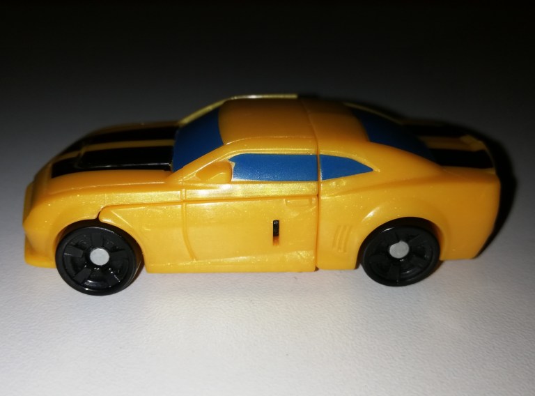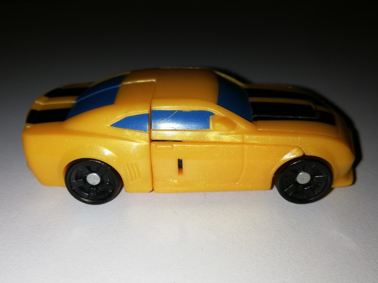 A cute little car mode that rolls well. It would fit right in with your Hot Wheels.