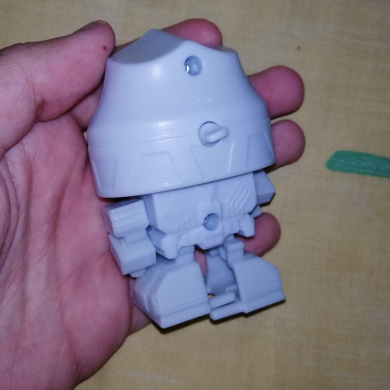 He feels so retro. He’s a wind-up toy that walks forward. His arms move up and down while he walks forward. His face looks so upset.