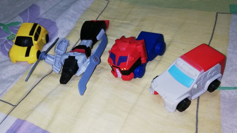 Second, they’re Happy Meal Transformers that transform. Now that is a lost art. If I’m not mistaken, this is the last set to have transformation as the gimmick.