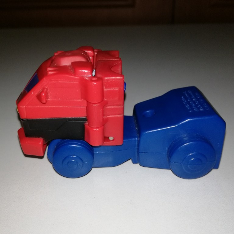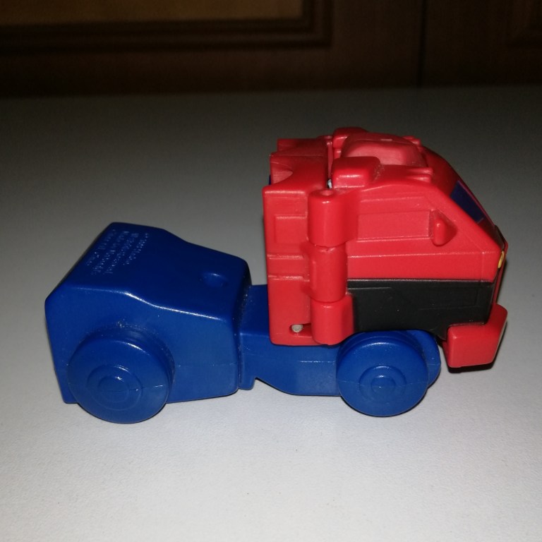 The last one of the Malaysian set. Optimus Prime here somehow has two (?!) great modes. Not great for Happy Meal toy great. Great for a Transformer great.