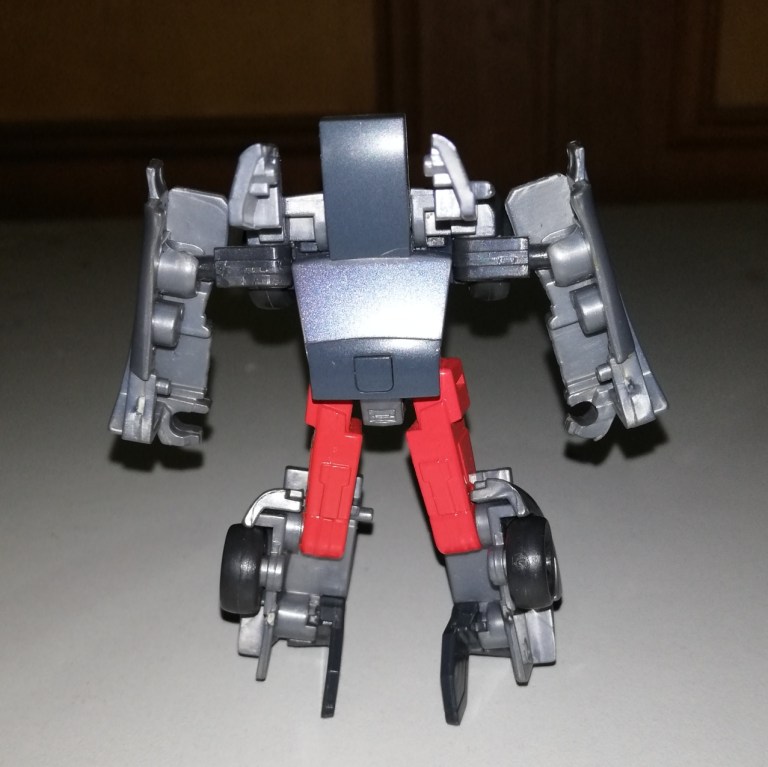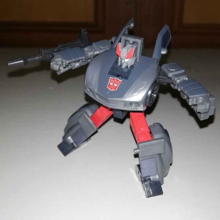 He can hold his gun in either hand and it looks much better in robot mode than vehicle mode. It’s less of a handgun and more of a rifle. Which is awesome. Also, he can wield it like a club. Which is hilarious.