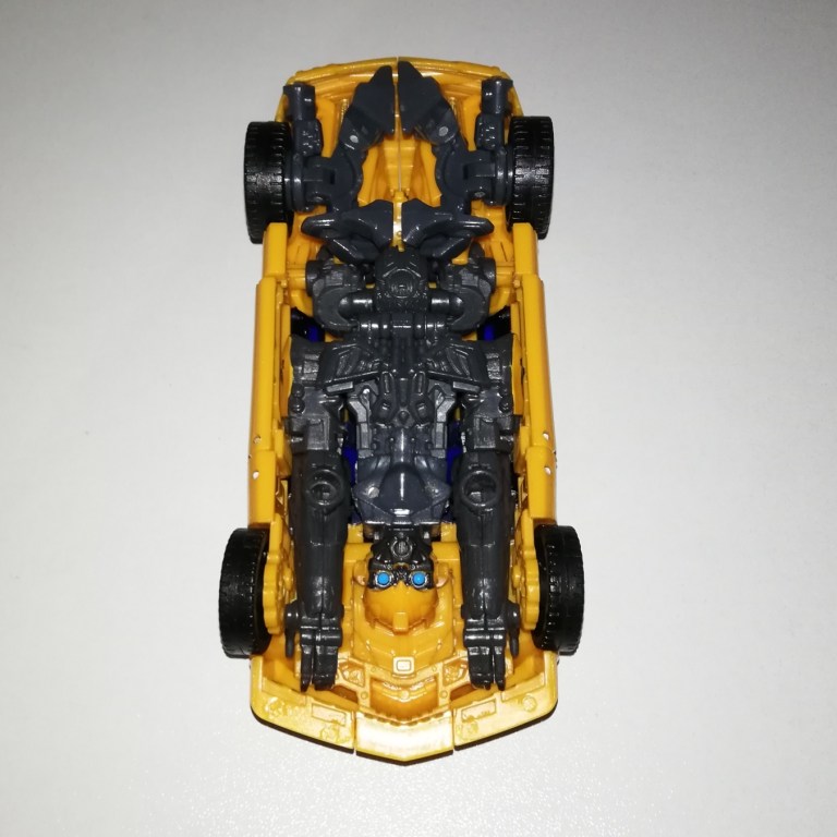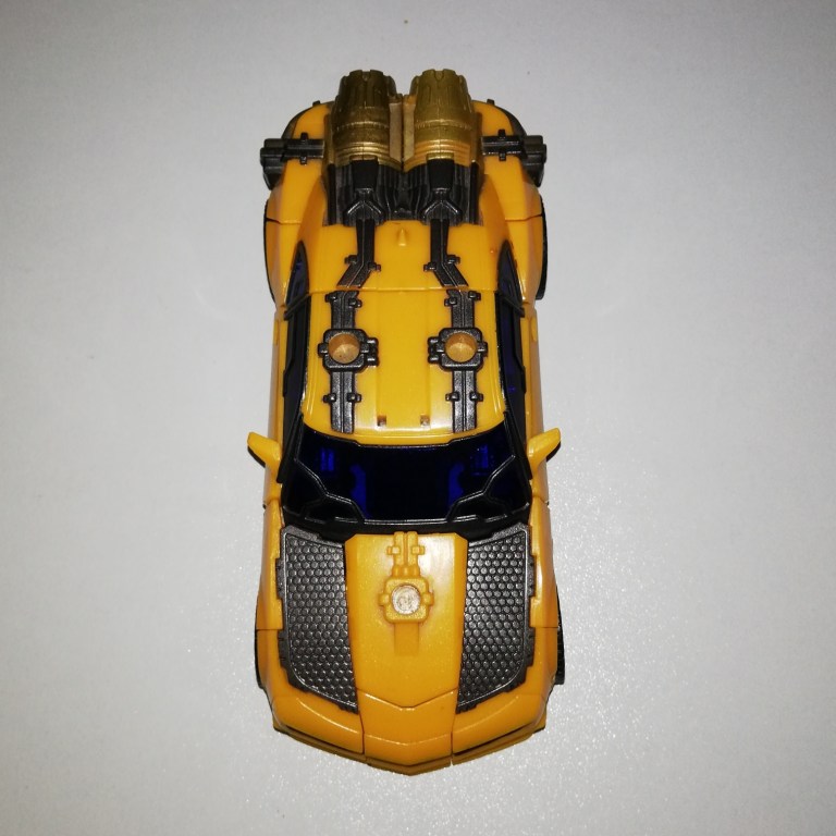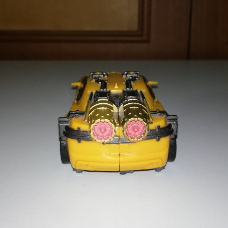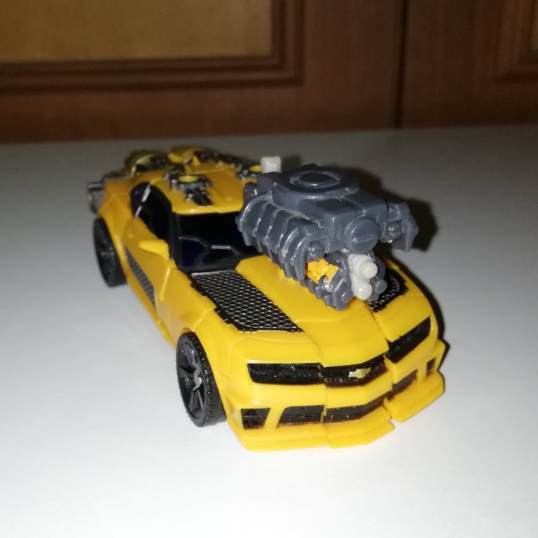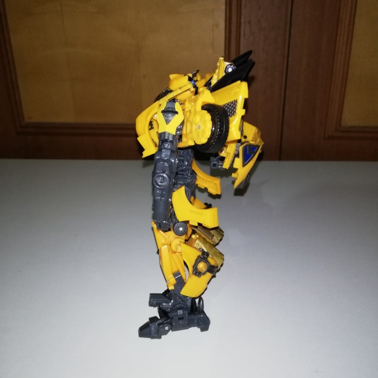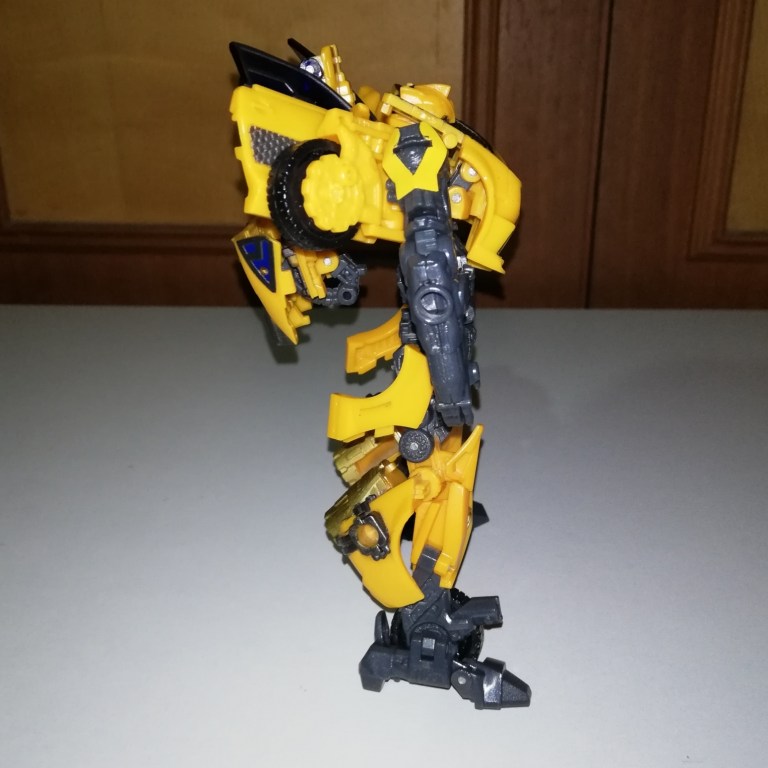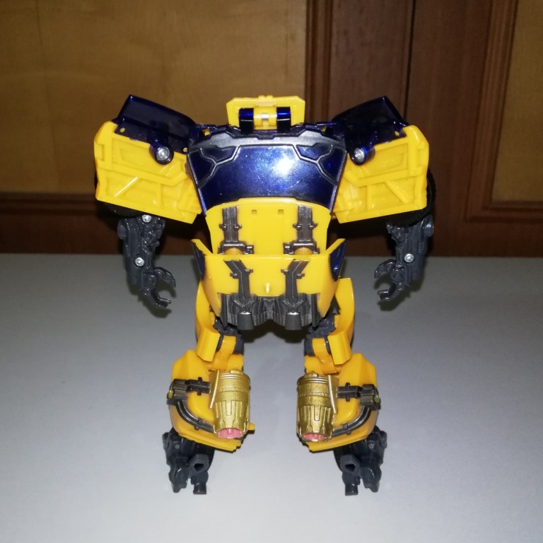 Seriously though, he’s more recognisable as Bumblebee in robot mode although his chest is massive in comparison to other Bees. The torso is wider and shorter than usual so his arms and legs also look beefier. The way the backpack and wings condense also make him look more buff.