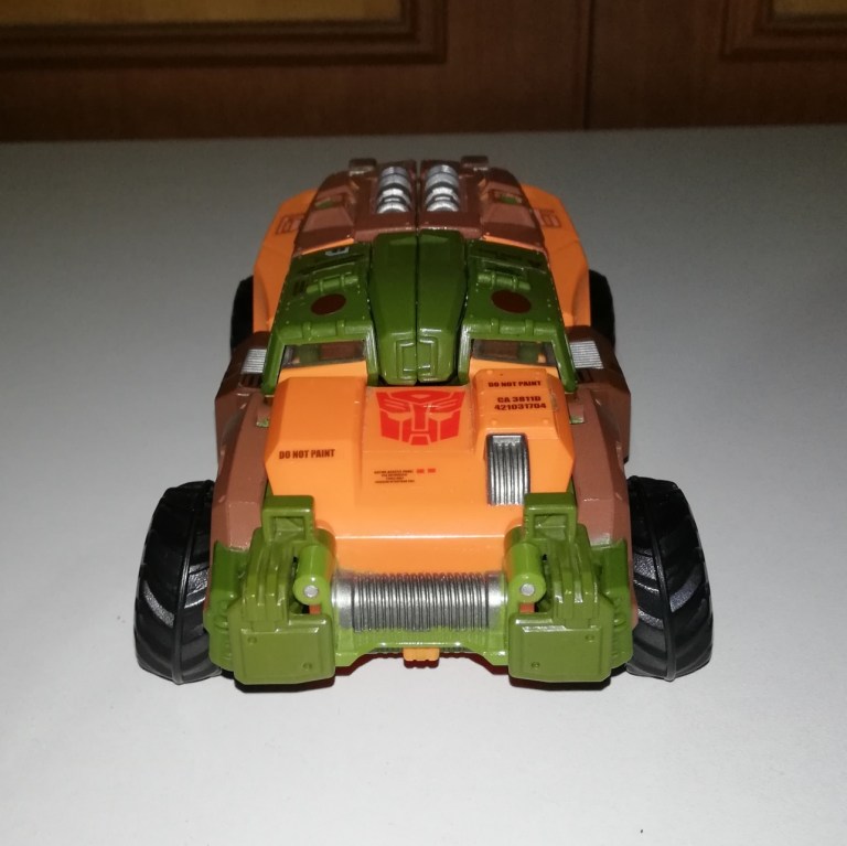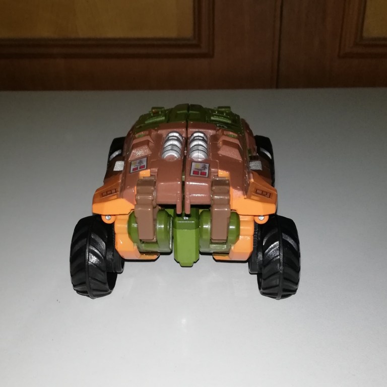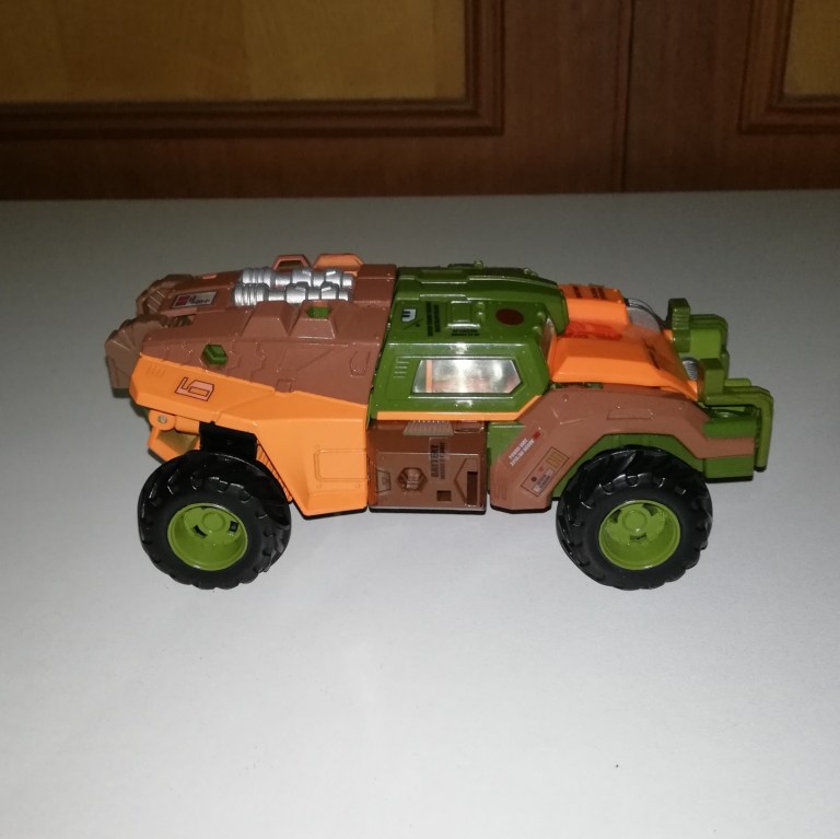 Roadbuster has a tall, buff and imposing robot mode. He’s painted well and comes with a bunch of stickers for detail.