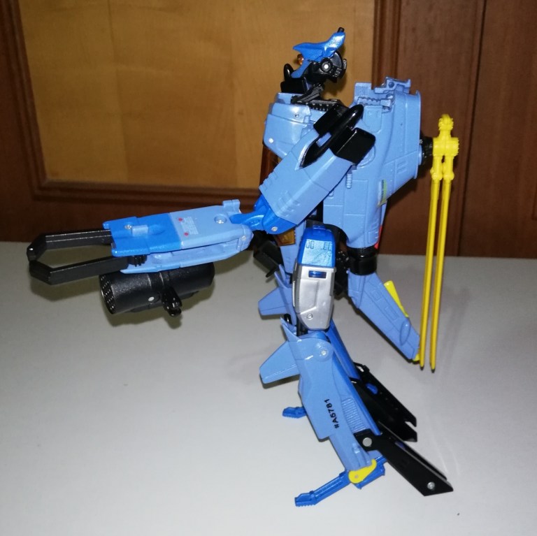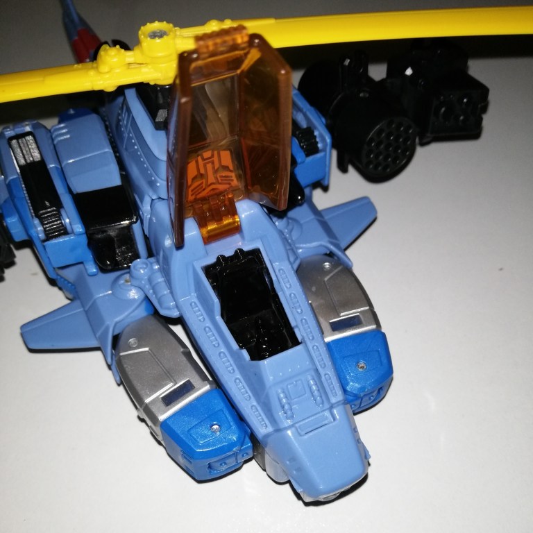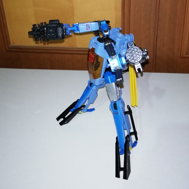 Whirl was supposed to come with four weapons, but I’m missing his big laser cannon. I still got his taser and rocket launcher though as well as whatever that third thing is. Whirl’s well armed and ready for a party.