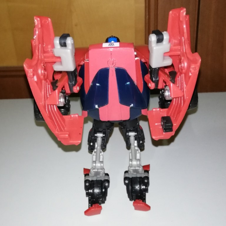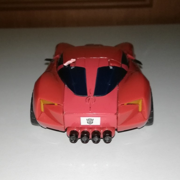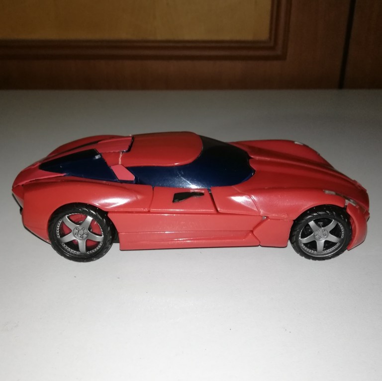 While the silver paint in car mode on Sideswipe was his main selling point, red actually looks very nice on this mold.