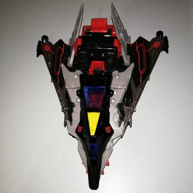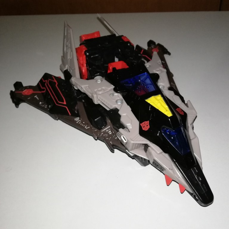 Black and red on a plane doesn’t really make him look like a good guy. I understand that making him bright Blaster red in vehicle mode would ruin the realism but still.