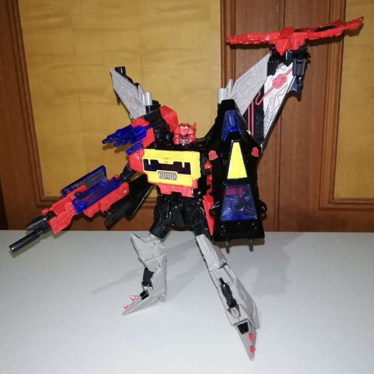 Blaster turns into a stealth bomber. He looks dangerous. The plane mode hides his parts really well for a jetformer. The robot mode parts are there if you’re looking for them but they’re all used very well in this mode, his chest in particular.