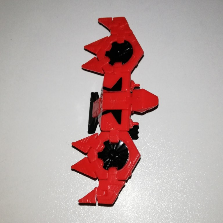His Cyber Key gimmick is activated by plugging the key into his back. Doing so opens Blaster’s chest to deploy the third bomb. Red Laserbeak! I mean Blockrock!