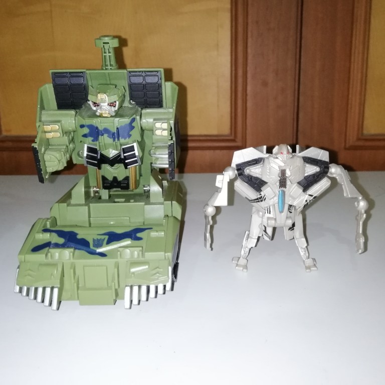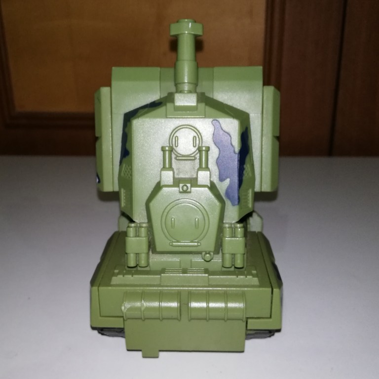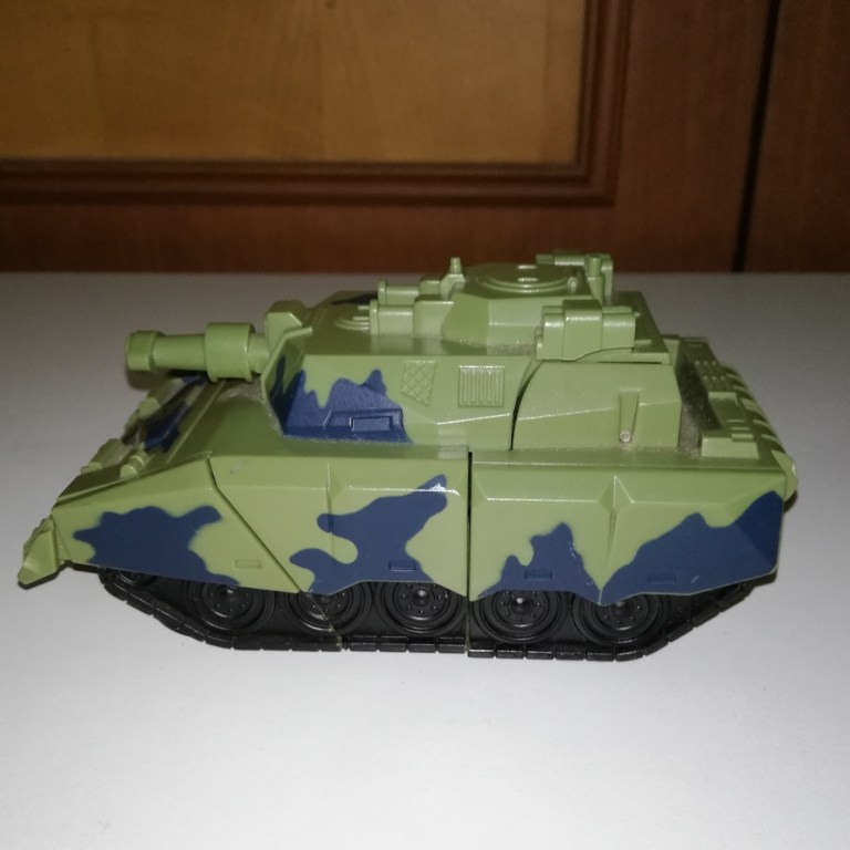 Push down on the body and Brawl turns into a tank, slowly moves forward and then turns back into a robot.Now. If you slam down on the body, Brawl turns into a tank, speeds forward and then turns back into a robot.I’m not one for being too rough on your toys, but these guys are called Cyber Slammers for a reason.Push down the body and turn on the locking mechanism. Brawl is now a tank permanently! Well, until you turn off the locking mechanism at least.