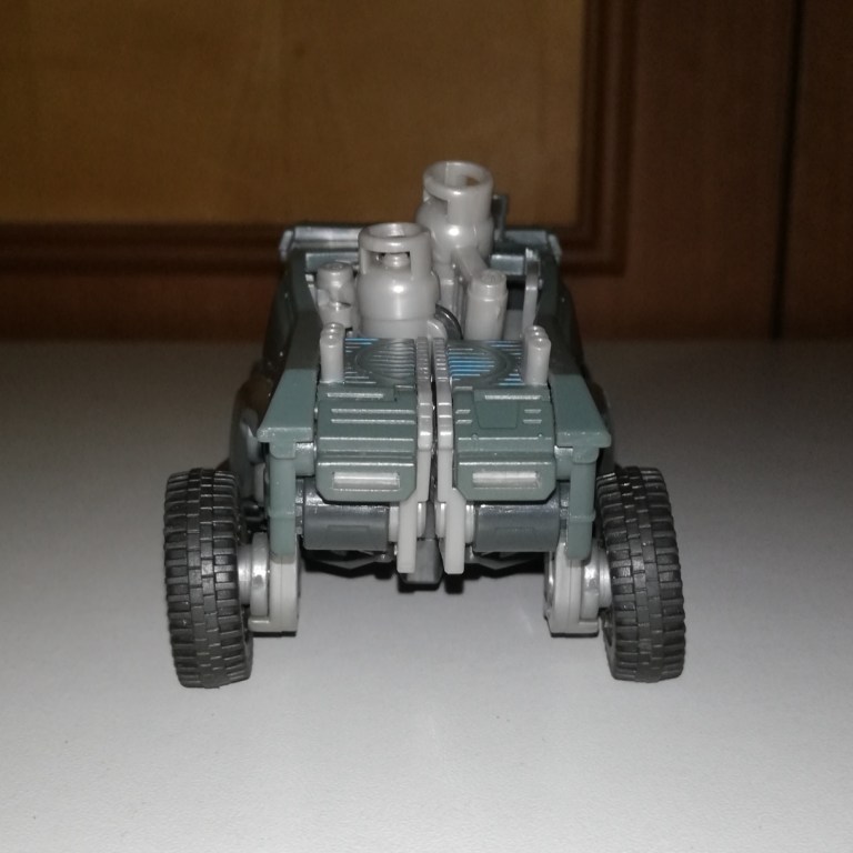 There’s no kibble whatsoever in buggy mode. Not even on his underside! He has seats in his interior. And get this, his gimmick is rubber tires and working suspension. All of that worked into a Deluxe class figure. It’s amazing.