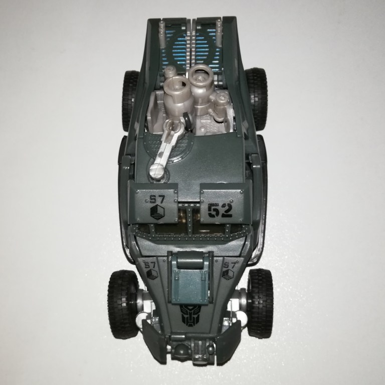 Landmine is looking sharp in robot mode. He doesn’t look too friendly for an Autobot though and that’s probably cause his face looks like a skeletal hockey mask. But that’s a recurring problem with Movie Autobots it seems. His colours are actually kinda plain, so the Allspark Blue actually does…