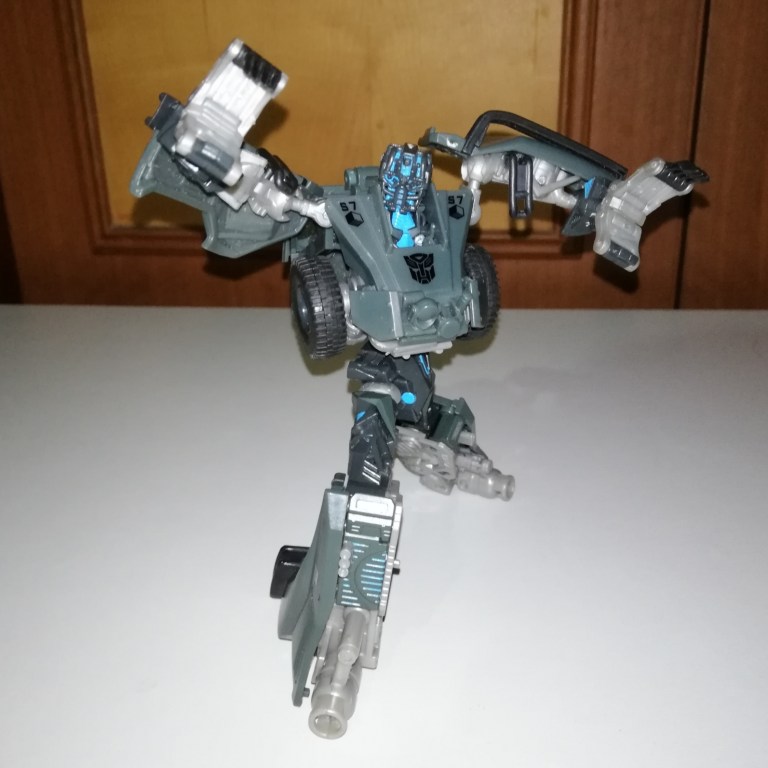 The posability Landmine has is great. He’s literally only missing ankle tilts. Aside from that, he has everything! His wheel feet make him a little hard to balance, but it’s not as bad as ROTF Sideswipe.