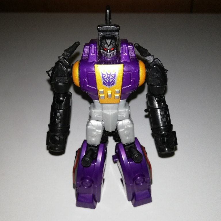 Bombshell is an excellent looking robot mode. He looks like one of those vintage, boxy robots but he’s black and purple so he doesn’t look too friendly. He’s definitely a Decepticon.