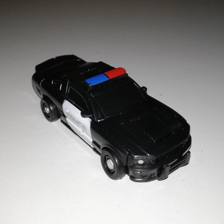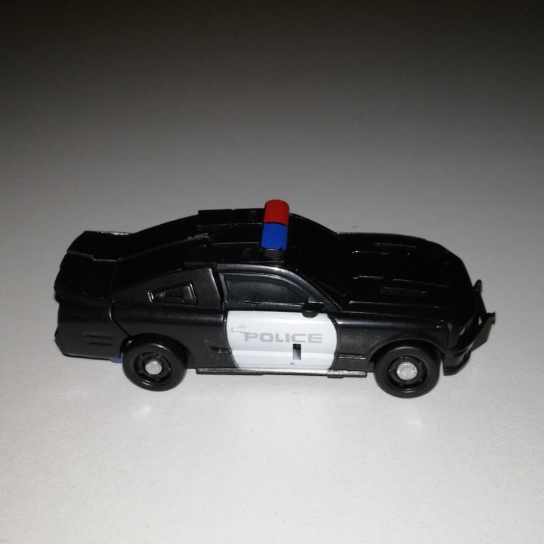The other day, I got a 2007 Legends Barricade in a lot of Transformers but he was missing a leg. Which was unfortunate cause I wanted someone for Legends Bee to beef with.