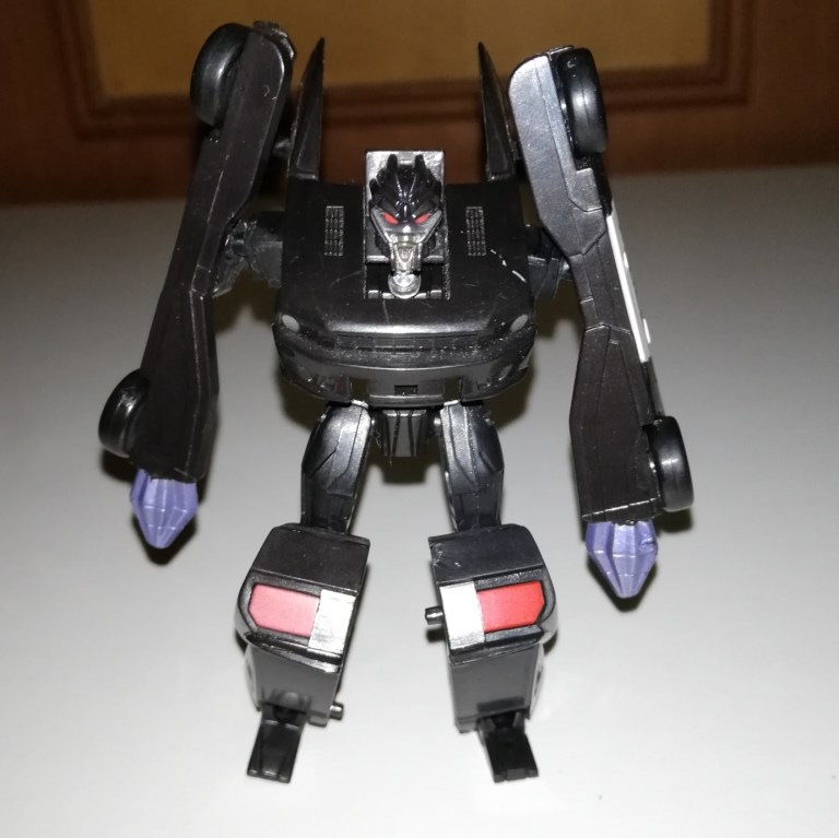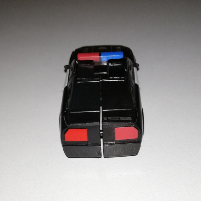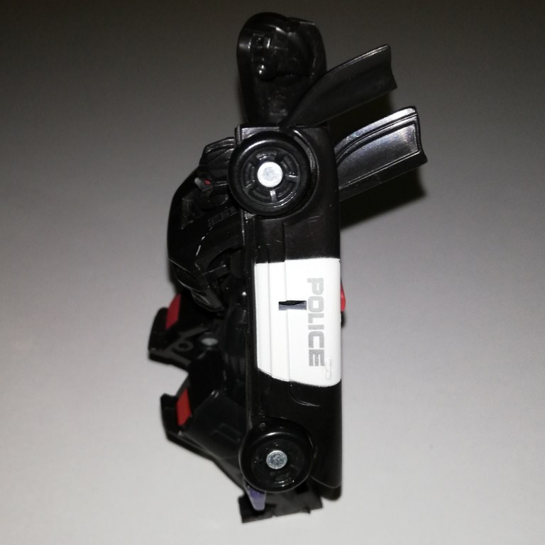 Barricade has a very simple and effective transformation. It’s very similar to the Movie 2007 Deluxe Barricade but of course simplified. And that transformation brings us to…