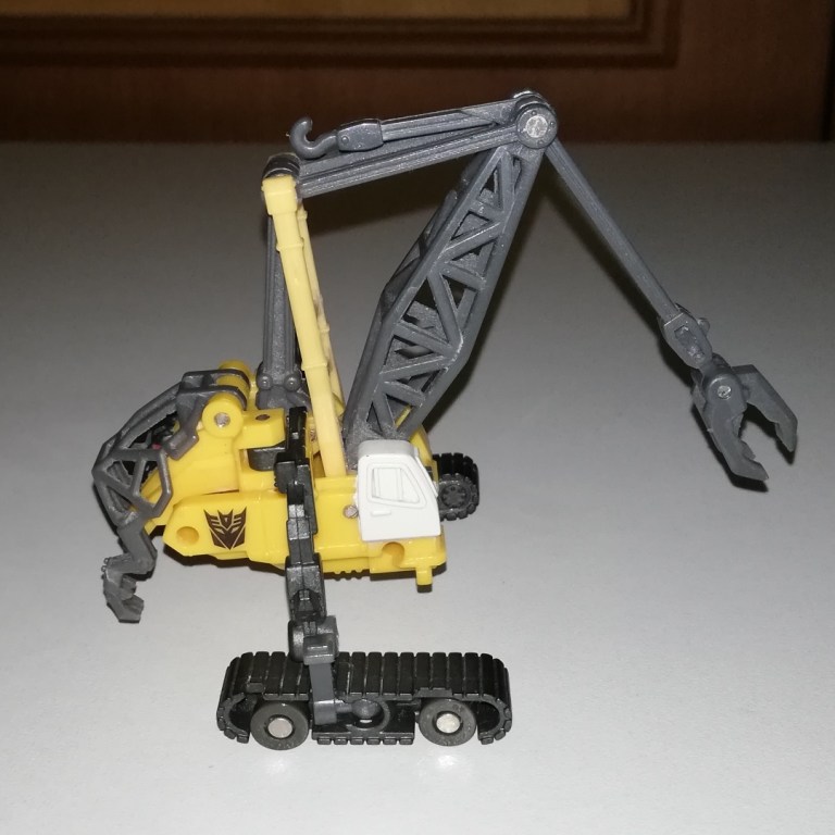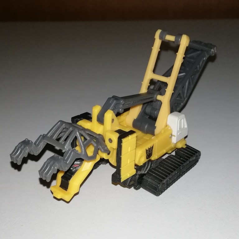 It’s the crane mode but reversed and his face and arms are Devastator’s hands. Freaky-deaky.