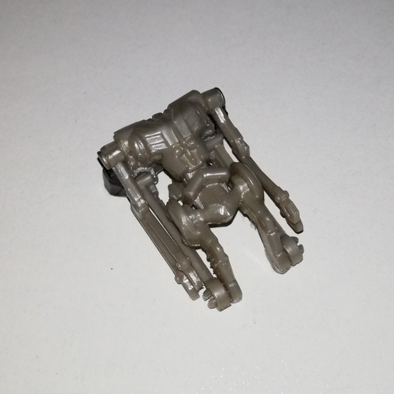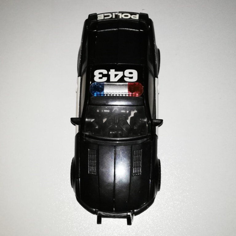 Barricade also cones with his little buddy Frenzy. Frenzy is well molded but is barely painted. He’s also barely posable with only his arms rotating 360° and him having conjoined hips, knees as well as feet due to the way he folds up. Frenzy folds up and can hide in Barricade’s chest. Or the hood of the police car I guess.