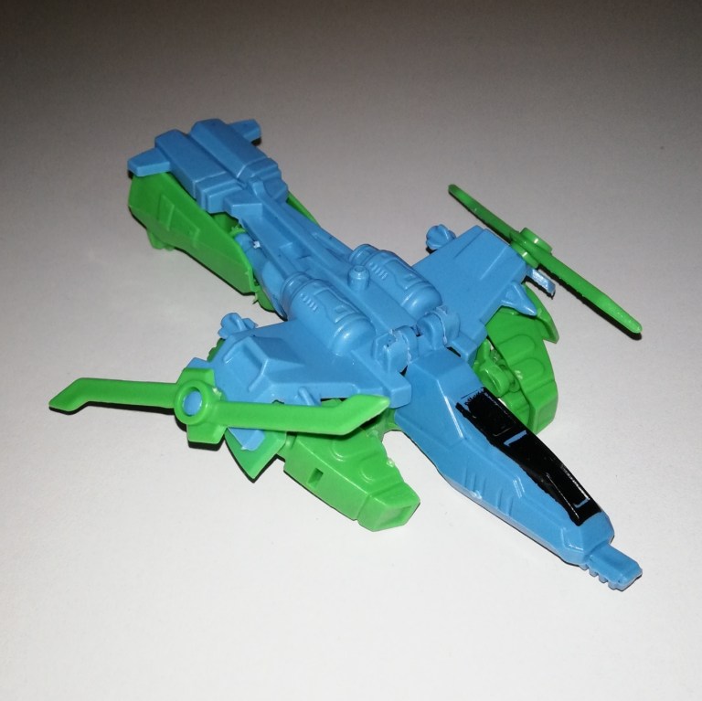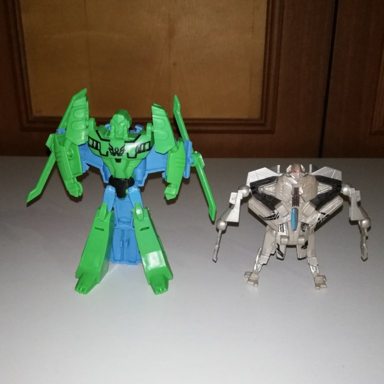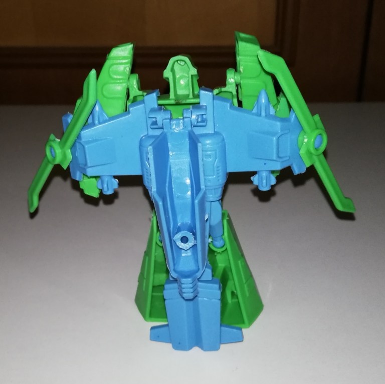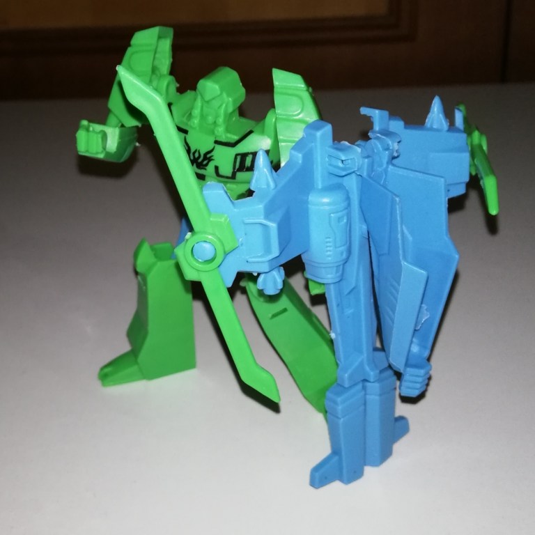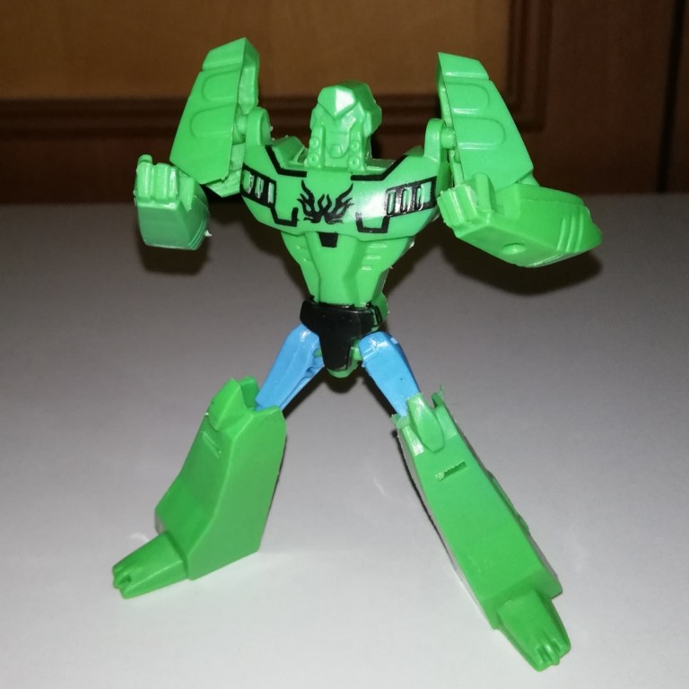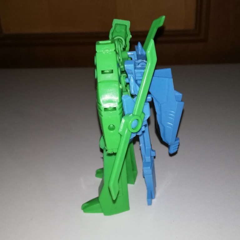 Megatron’s what you’d expect from a figure that cost literally less than $1. Plastic is thin and brittle feeling. The auto-transform gimmick has been neutered. Also, he’s green. For RM3.80, I like him. He’s a nice size and retains most of his posability. Also, you can take of his backpack and have him sorta hold it like a shield with a cannon attached.