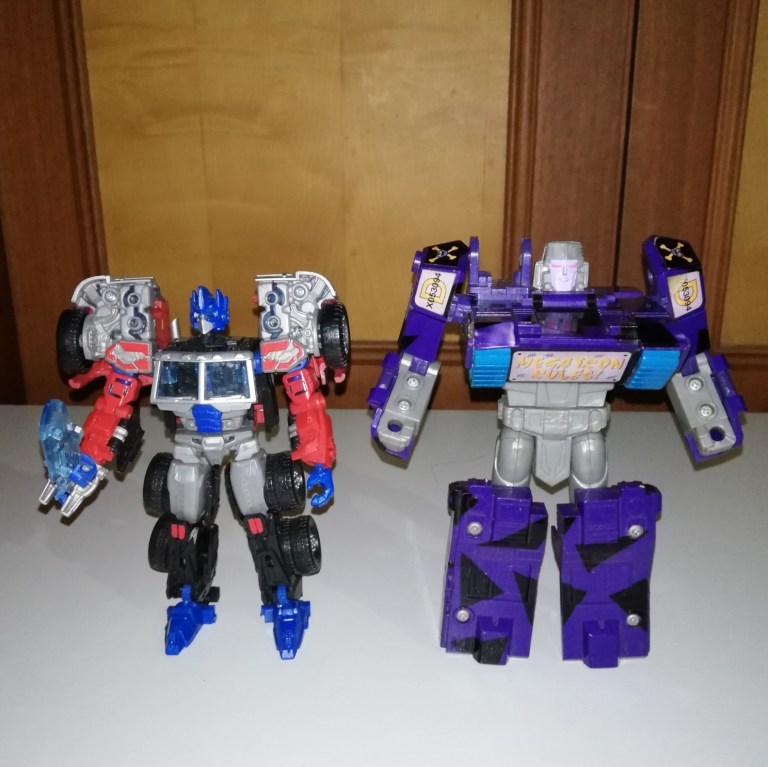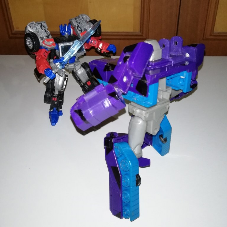 There’s only one reason I can think of for why people don’t talk about Laser Optimus much. He’s small (even though that means he scales nicely with Hero Megatron). He’s a big Deluxe but I think he should be a Voyager at least. Actually, with this level of complexity, he could comfortably be upsized to Leader Class.