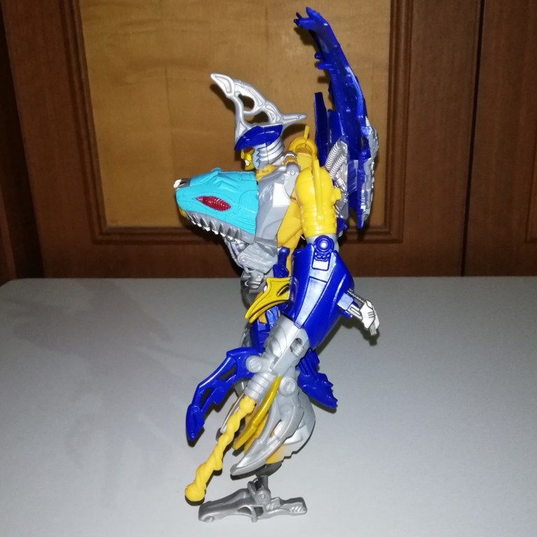 Sky-Byte’s can open his mouth in this mode. He can also waggle his tail and fins a bit. That’s it. But what more do you expect from a giant killer fish? Oh yeah, you can activate the drill gimmick and firing missile in this mode too. But they’re on his tail facing backwards so that’s kind of weird.