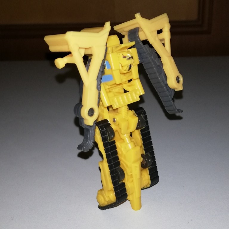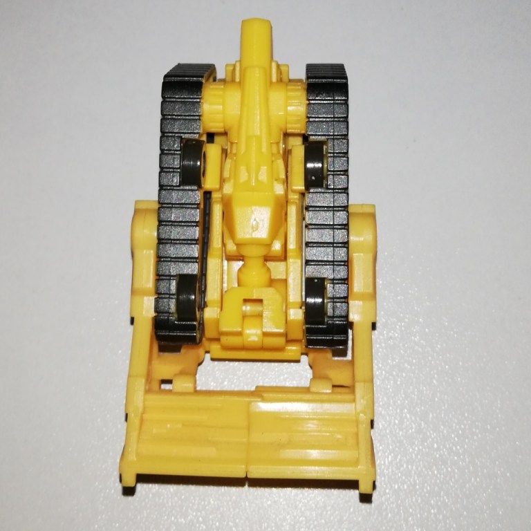 He’s not very functional though. The shovel is fixed in place and can’t be moved. Rampage has tiny wheels under his treads, so he can roll around though.