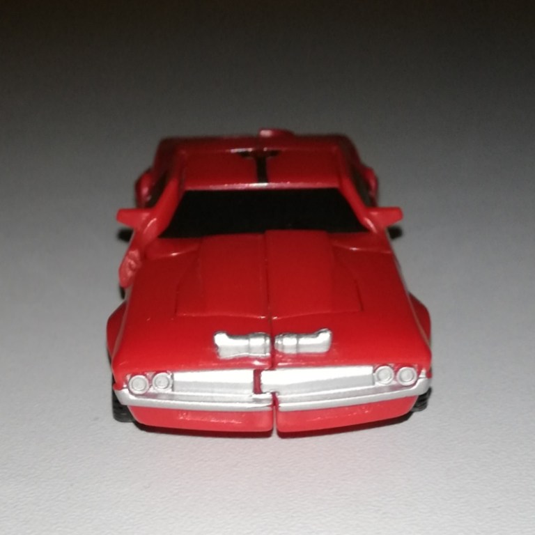 This is about as badass as Legends car can get. Cliffjumper’s a muscle car with horns on the hood. The fact that Hasbro bothered to sculpt and paint the horns makes me happy. Speaking of paint, the only paint apps missing are on the side exhausts. Aside from that, everything is molded and painted nicely. Another thing that’s great is that there’s no robot mode kibble anywhere. Even the underside is relatively clean.