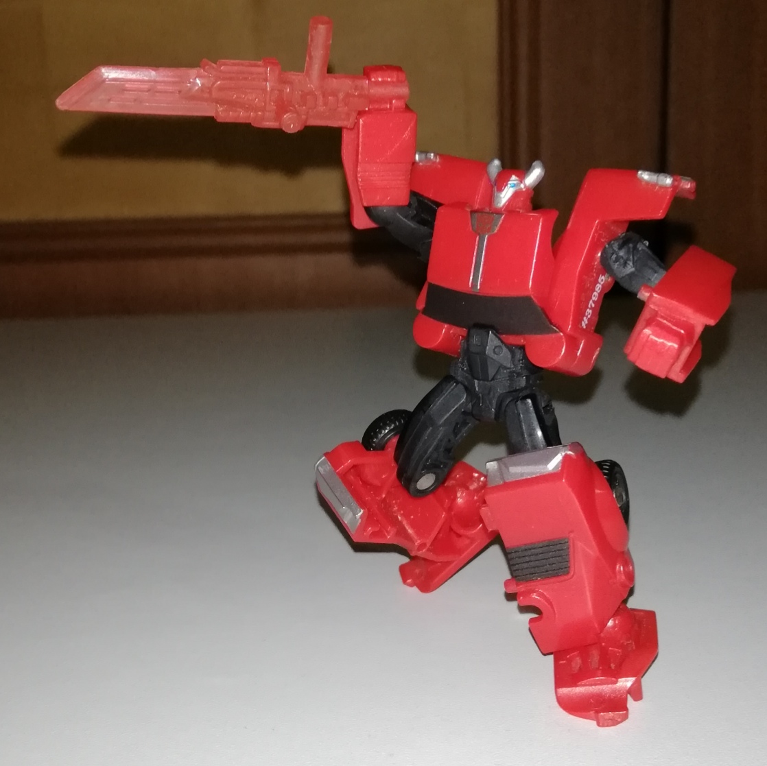 Oh yeah, DOTM and Prime Cyberverse figures were special. They made a big improvement to the Legends/Legions figures. They can hold 3mm weapons! Cliffjumper’s is a pretty cool looking translucent red sword. He can hold it like a sword… or like a gun. Yeah, don’t make him hold it like a gun. That’s dumb.