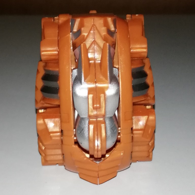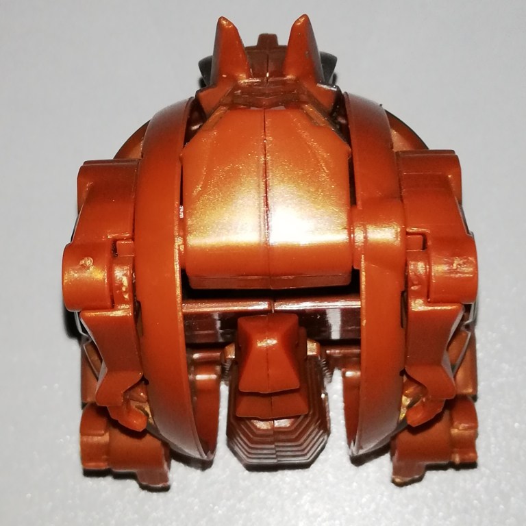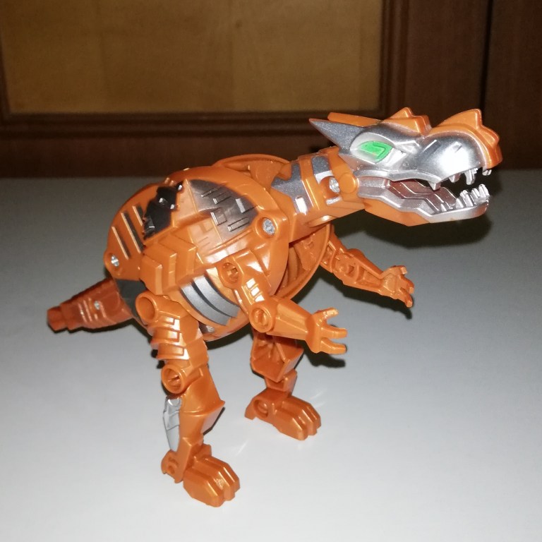 Grimlock is made of pretty decent plastic. It’s not Hasbro level good but it’s not fragile or shampoo bottle plastic. His dino mode looks pretty great and even can be posed a bit. The molding and paint is surprisingly extensive. His egg mode… is Grimlock folded up.