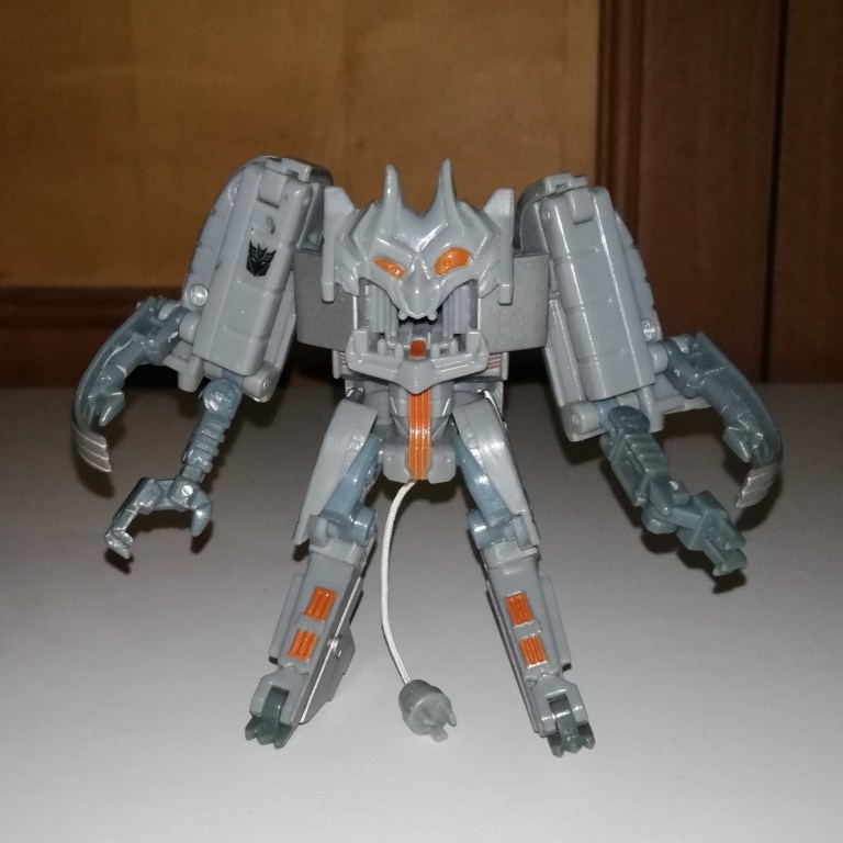 Ejector is a four armed gremlin. Or a troll. Whatever he is, he ugly. And I love him for it. There’s not much shiny silver on show in robot mode anymore. It’s replaced by a dull, dark grey. Usually that’d be a bad thing but I think it makes sense in this case. Something that looks like this shouldn’t have metallic paint.