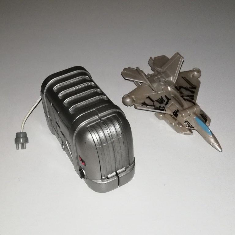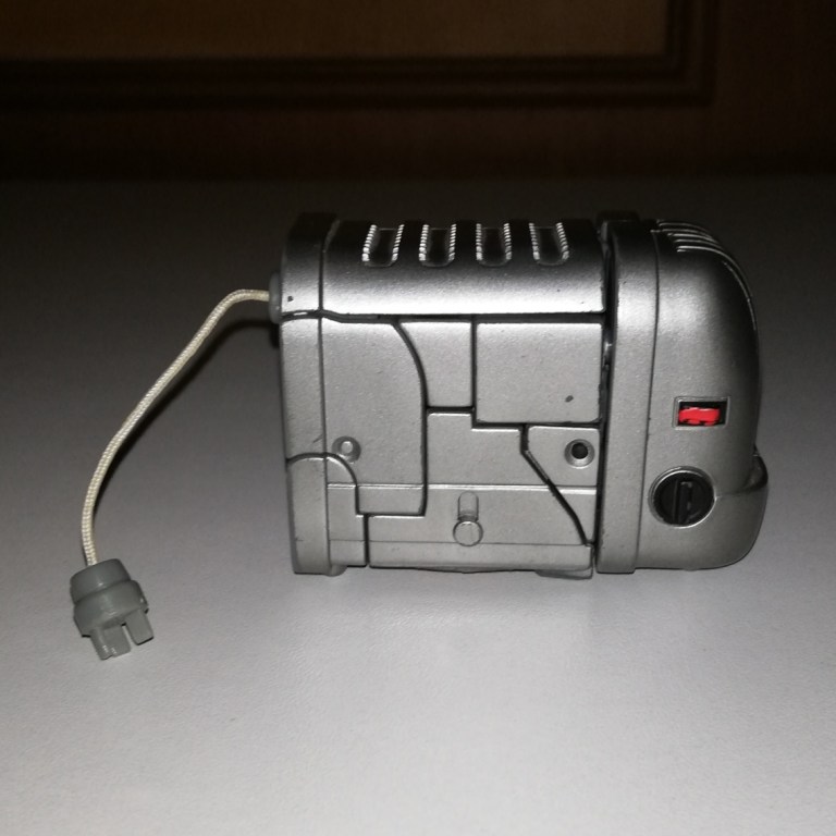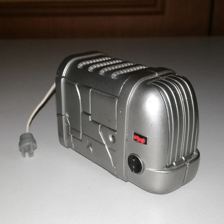Yes, yes. Ejector is a toaster. Apparently, he’s based on a best selling toaster from Britain. He certainly looks high quality. Ejector’s got lots of nice molded detail and is covered in silver paint. All the little buttons are painted too, which is nice.