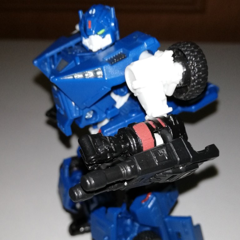 Breacher does quite a bit more than the average Bayverse Scout figure. He rolls well on all six wheels to start with but guess what? Breacher has a fully articulated turret! It rotates 360° and can aim up and down! So satisfying.