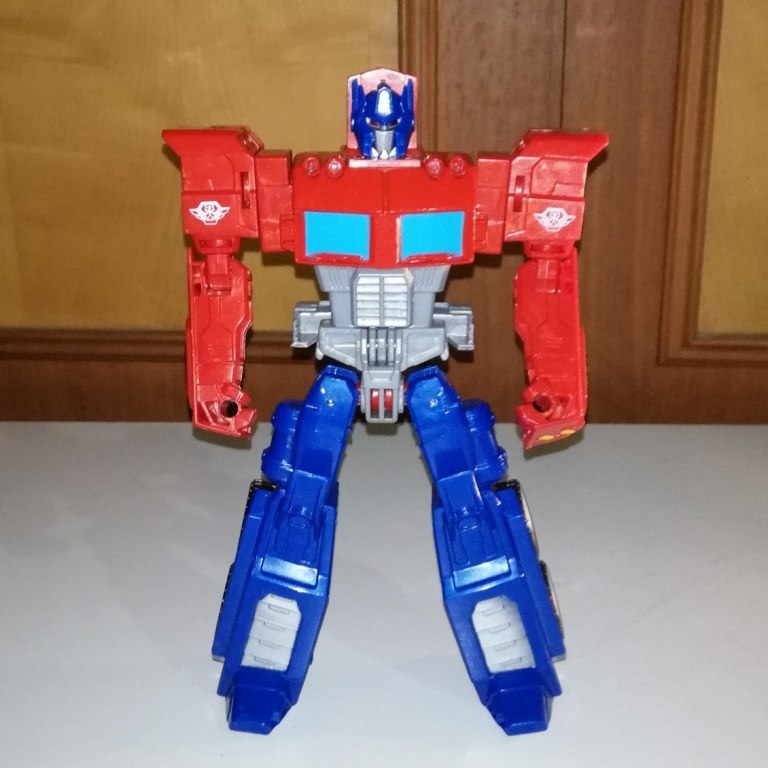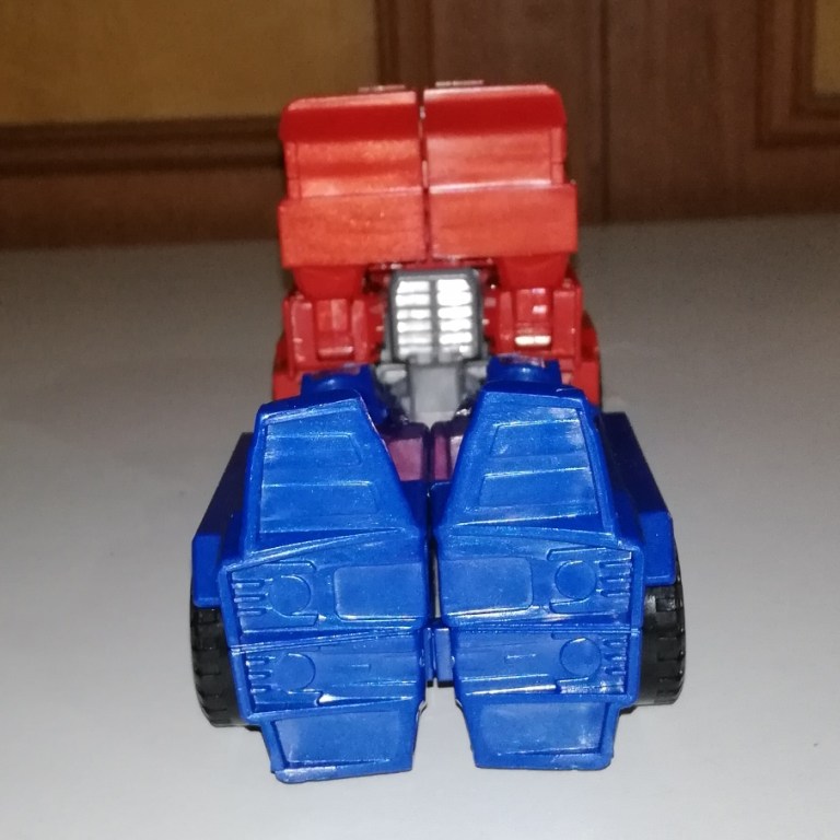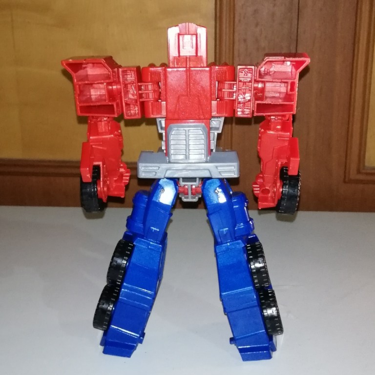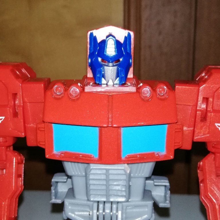 One thing interesting though is that Optimus has painted red eyes now. I guess even he’s mad he has no knees.