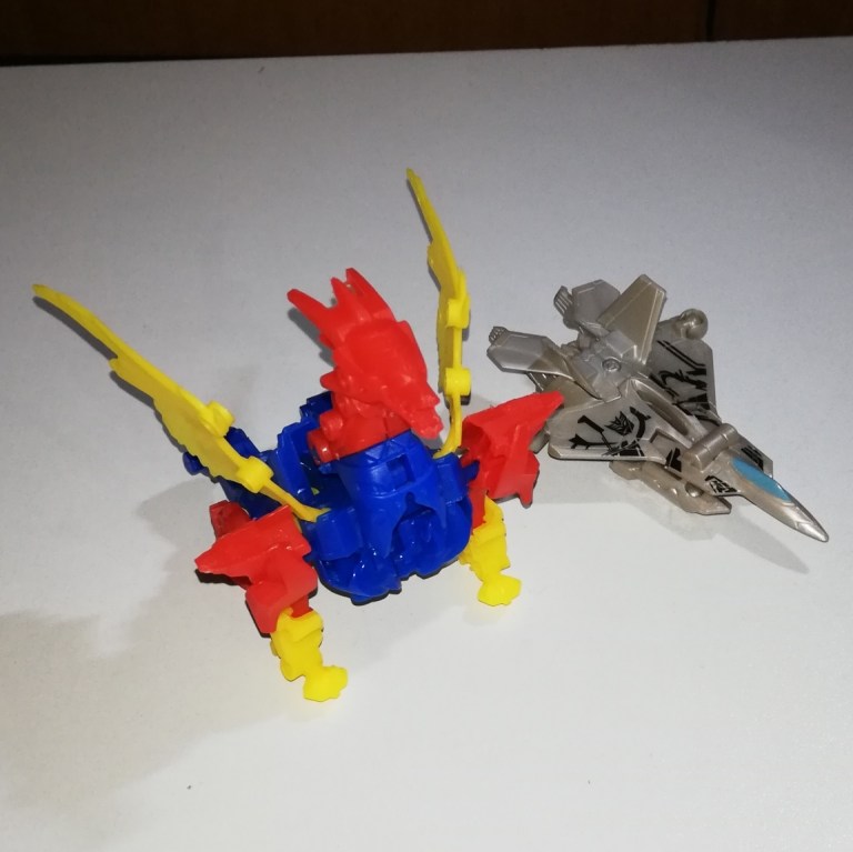 He’s missing his head. Come on, dude. Miss a leg or arm, sure. But not the head! Aside from that though, Predaking is okay. He’s been simplified a bit and is missing his weapon but all his joints are tight. Also, even though he looks like he is, he’s not made of shampoo bottle plastic. It’s only just slightly better than shampoo bottle plastic though.