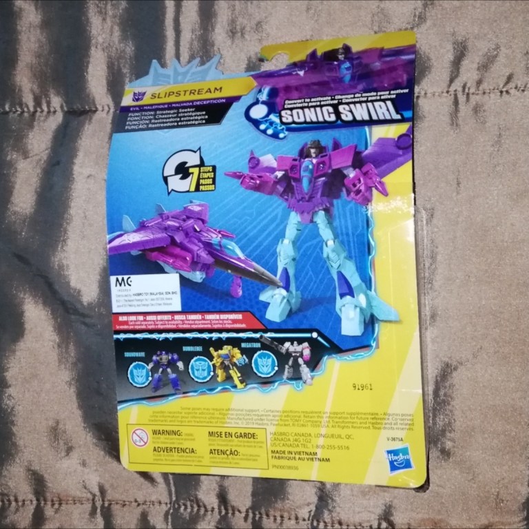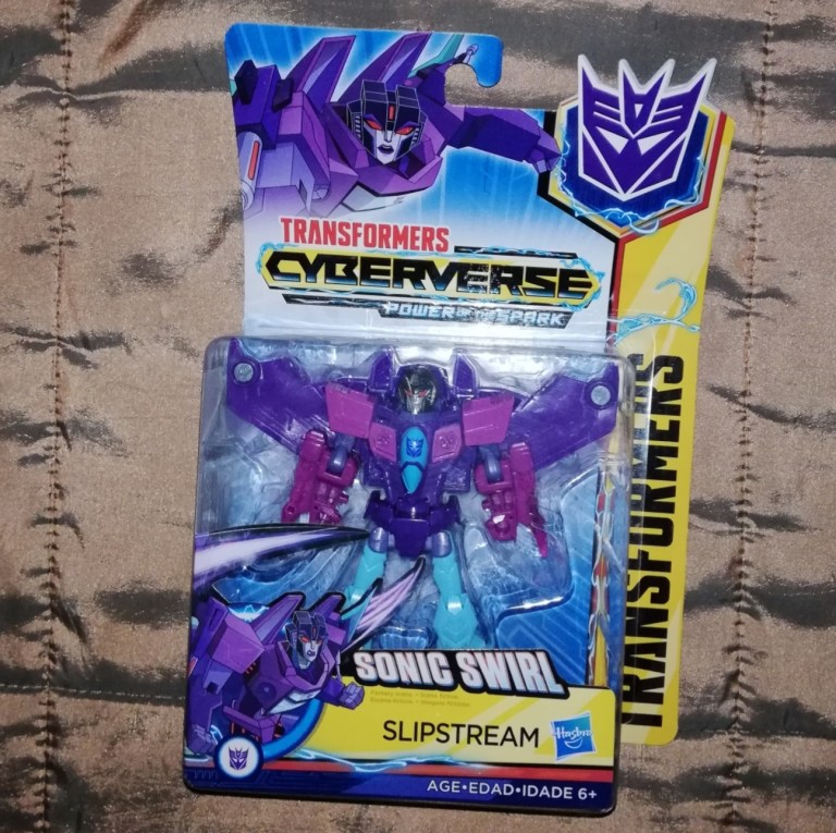 This is a straight repaint of the Cyberverse Warrior take on Lord Starscream that we looked at earlier. There’s no new molding here at all. That’s not unusual at all for the Seekers but this is Slipstream for Primus’s sake.