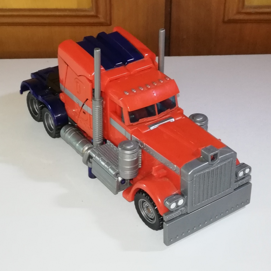 Optimus has the Bayverse Optimus truck mode but is painted in the colours of G1 Optimus.
