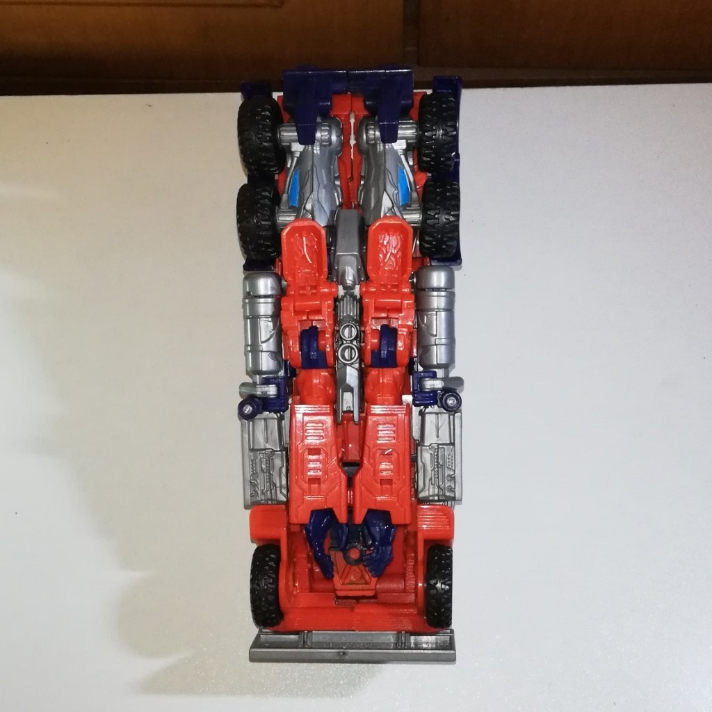 Anyway, Optimus looks good in these colours. There’s plenty of detail that’s nicely picked out by the generous amount of paint apps. Also, I feel as though this is a more realistic colour scheme than the flame details that Bayverse Optimus actually got.