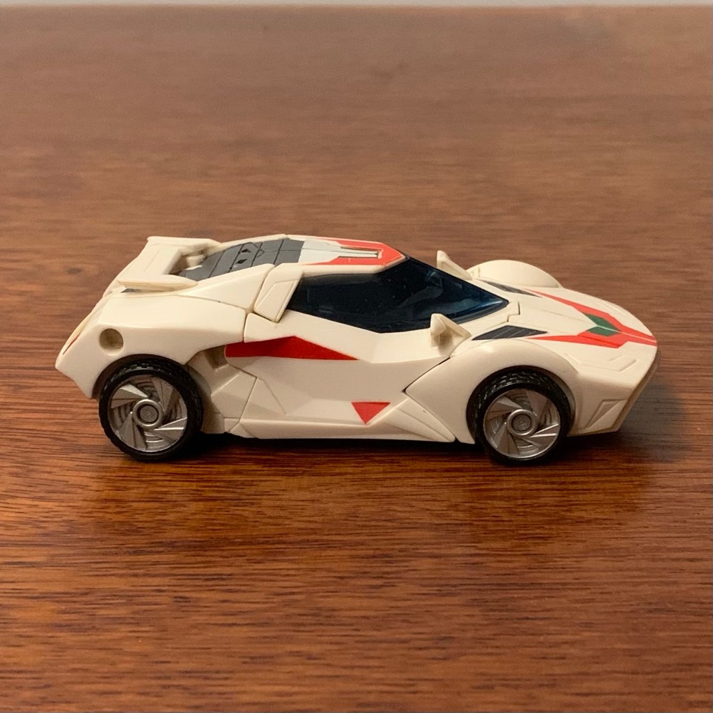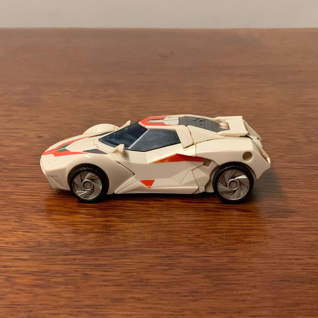 Wheeljack turns into a sports car and is highly reminiscent of his G1 car mode unlike some Wheeljacks. He’s got that Prime cartoon aesthetic but still looks reasonably realistic. The paint job is surprisingly well done for a mainline Deluxe that came after DOTM.