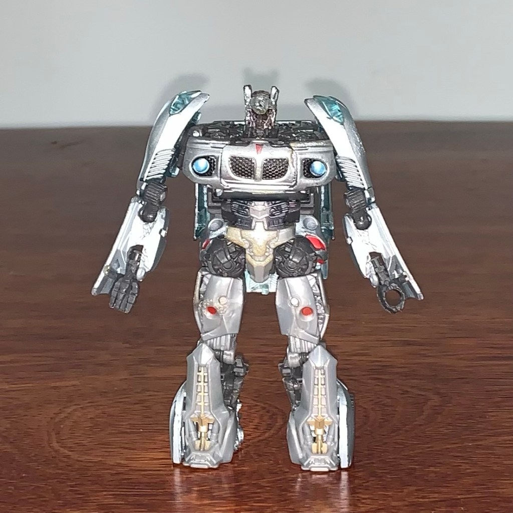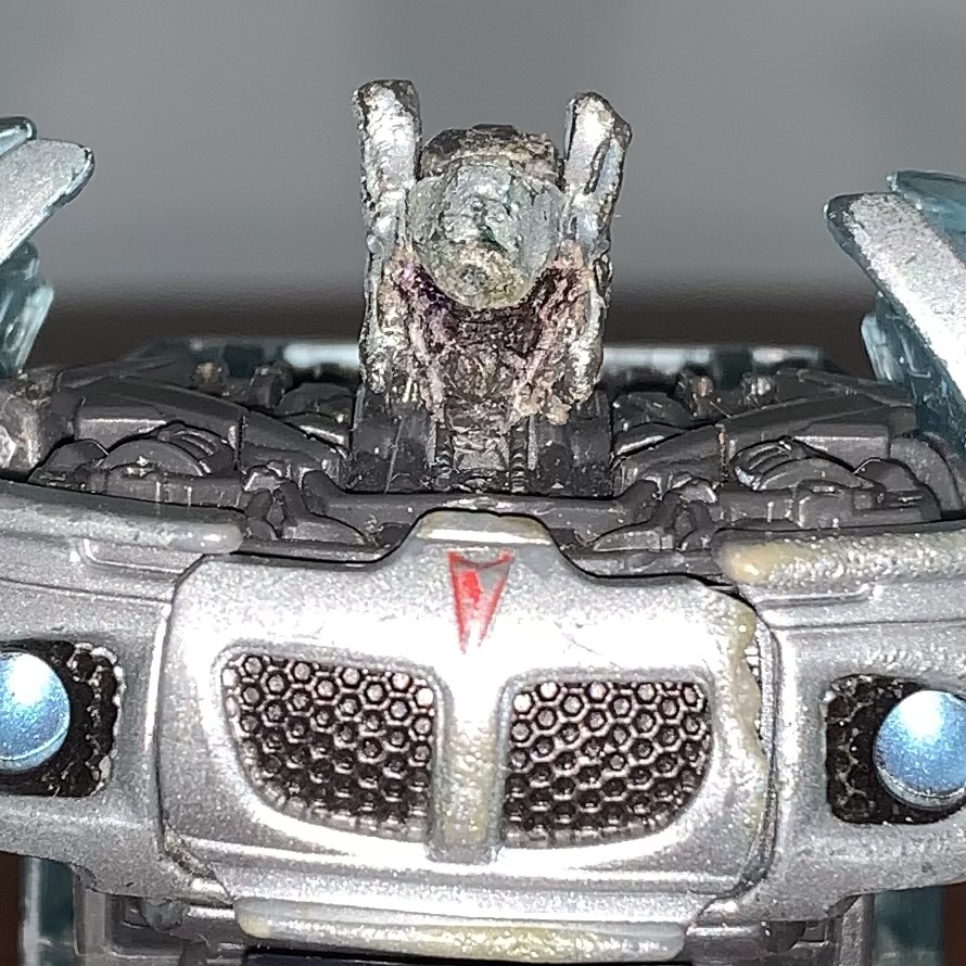 The car mode is really nicely molded and painted for how small it is. There’s details everywhere and Jazz is bathed in silver paint… even with all the custom damage work that was done on him.