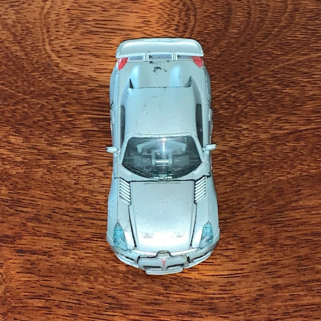 For playability, Jazz can roll and you can store his gun at the back of the car mode. Also, the custom damage makes just looking at the car exciting, imagining that this is Jazz’s last stand… in Pontiac Solstice mode.