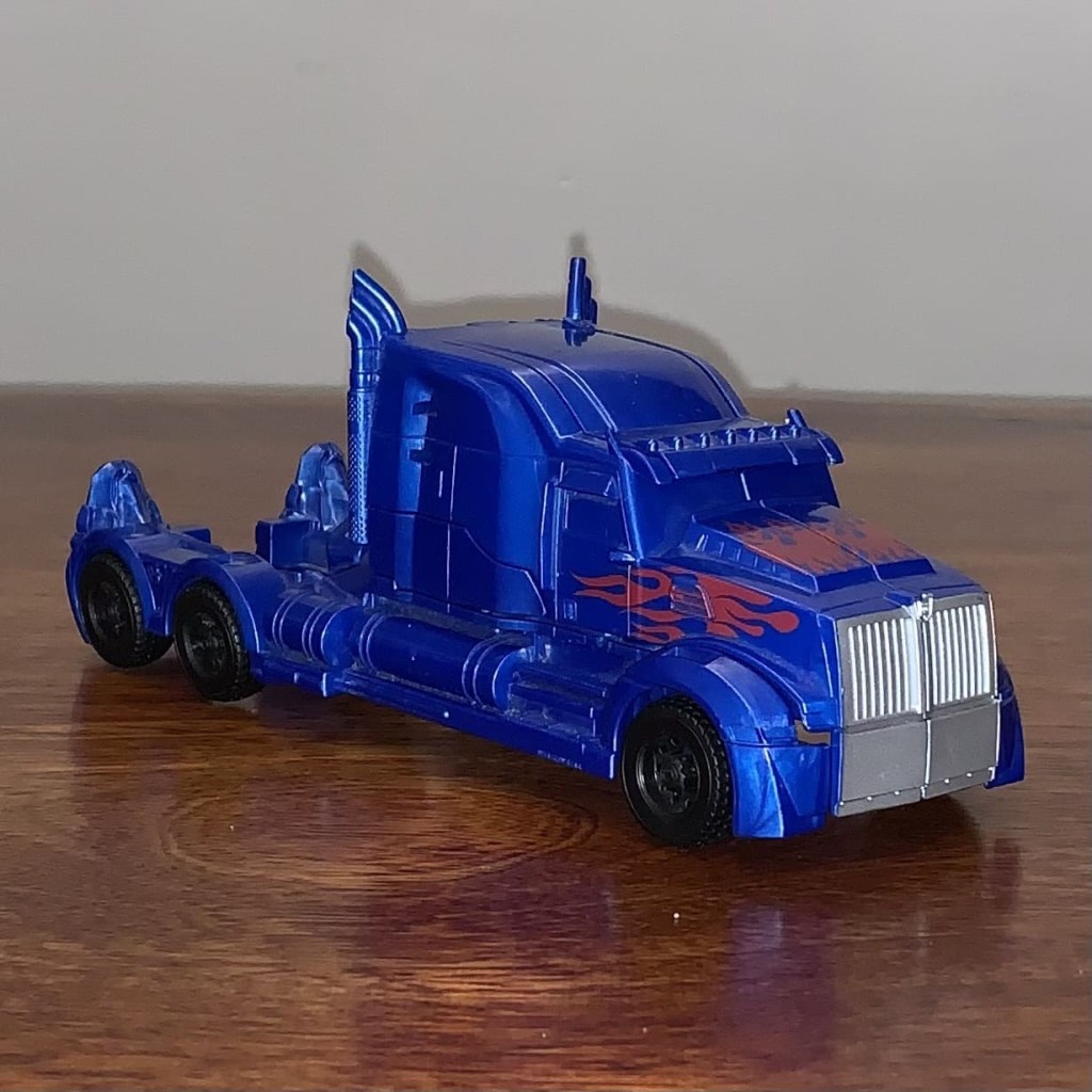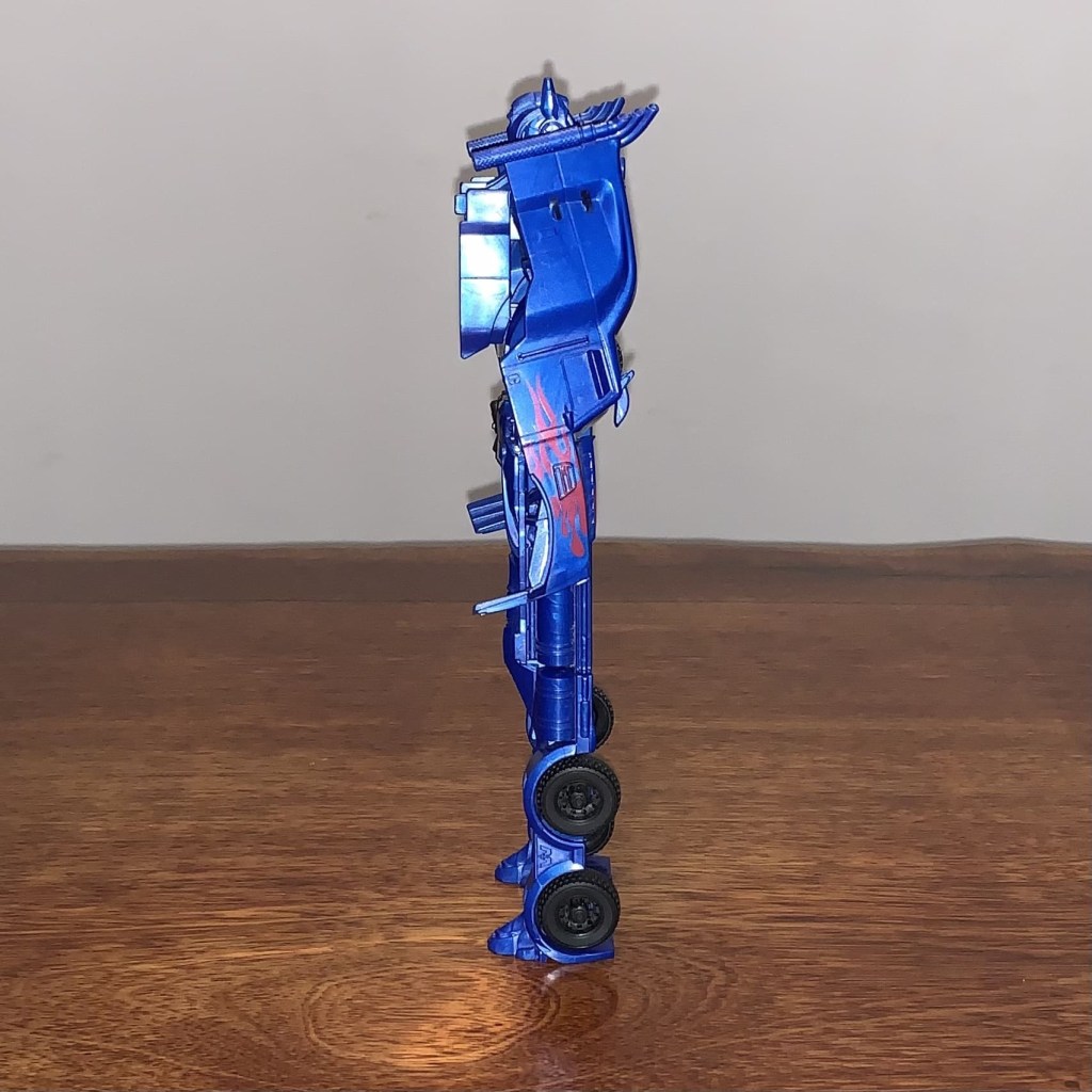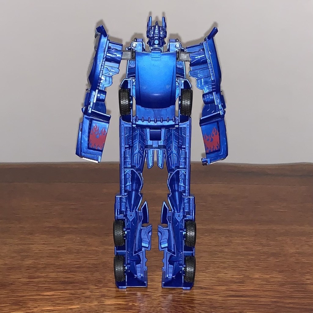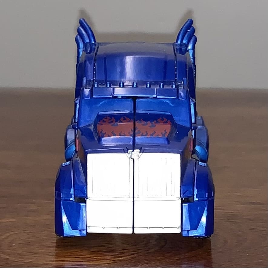Optimus actually looks decent in truck mode… apart from the jarring lack of paint. The silhouette is spot on, there’s barely any robot mode kibble and you only really notice his hollowness if you look at his underside.