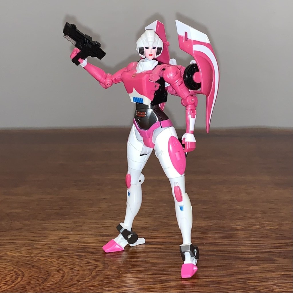 Overall, I think Arcee is a great figure that’s worth hunting down… but the face really, really takes some getting used to. If you’re a customiser with a steady hand, I strongly suggest you try to give her face a nice once over with better colours.