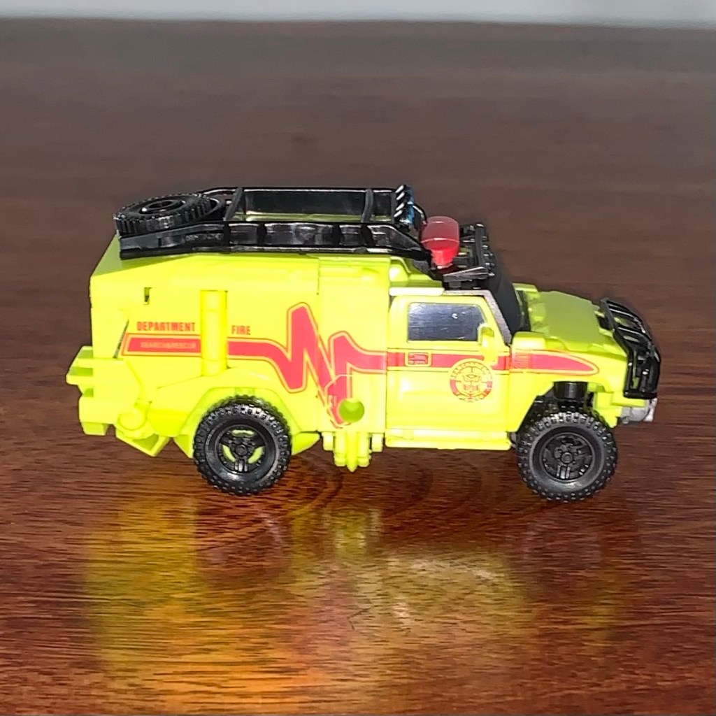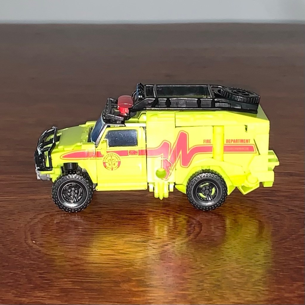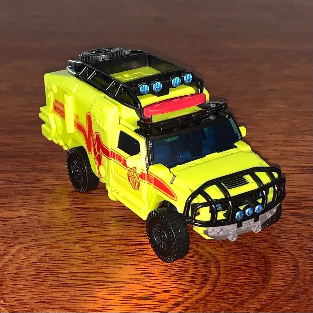Yup, that’s Ratchet, the green ambulance… or is it yellow? Either way, he looks good.