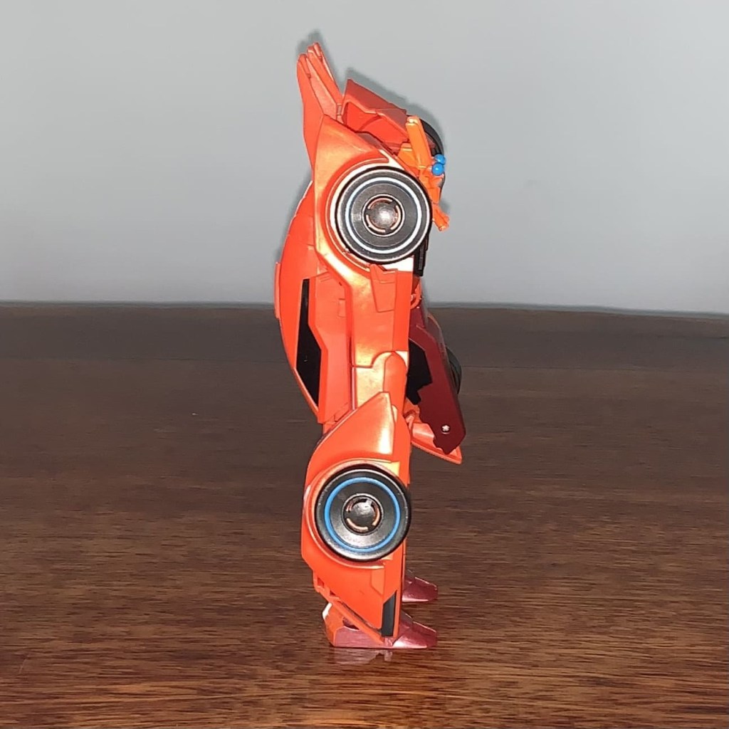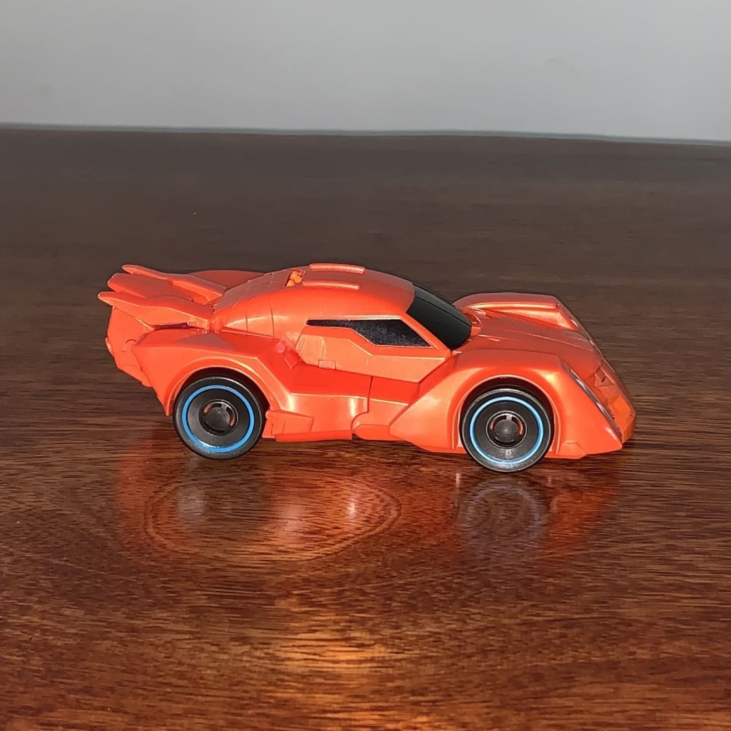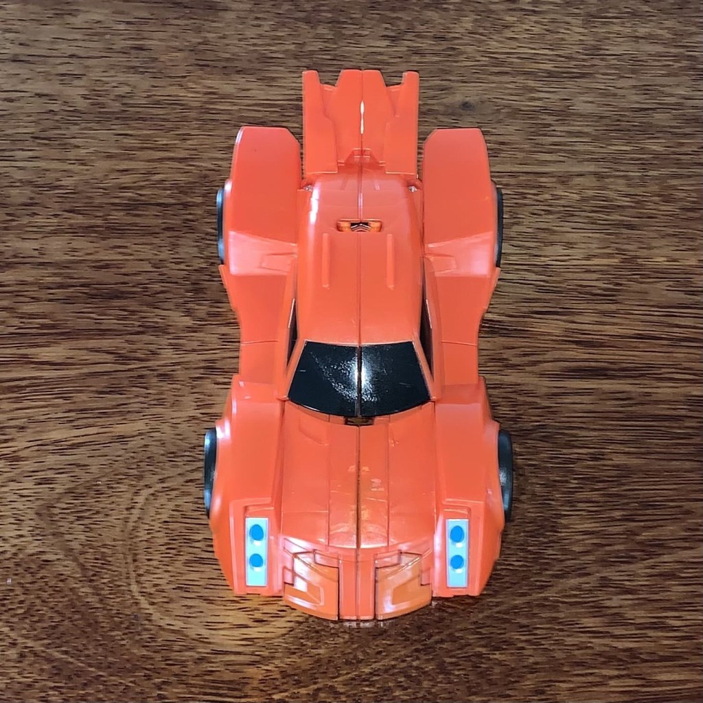 Bisk is an orange sports car… that has some hints of lobster in the details. It’s actually a pretty sweet car mode that doesn’t have any obnoxious robot mode kibble showing anywhere. The car mode details like the windows, headlights and wheel rims are all picked out nicely with just enough paint apps.