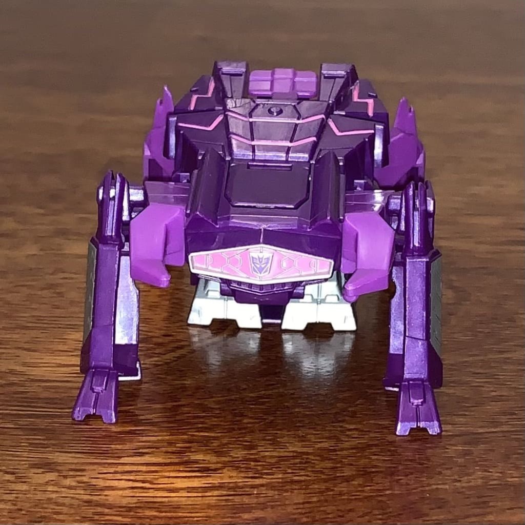 Shockwave’s main gimmick is his one-step transformation that you trigger by squeezing or stretching out the two back legs of the spider tank mode.