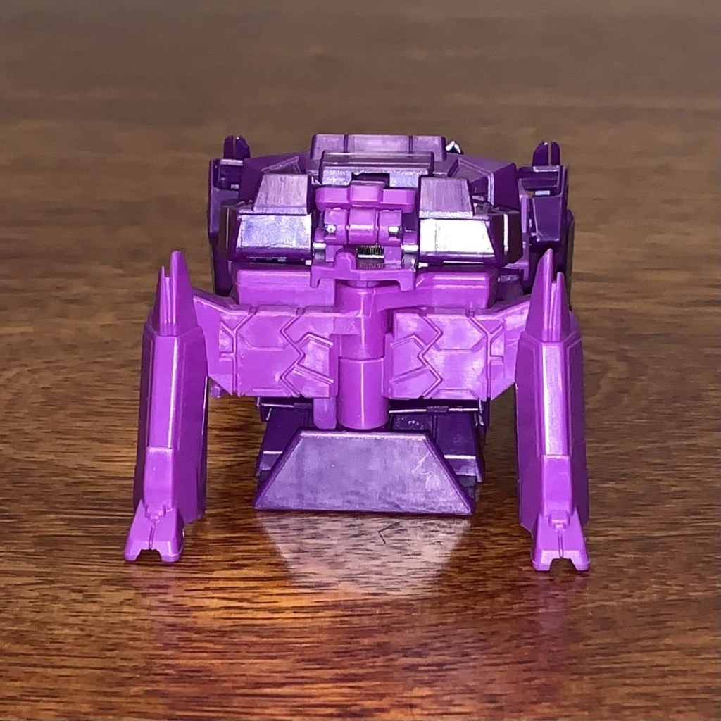 Shockwave is a crab-walker tank… but he doesn’t have a massive cannon like he usually does. What he does have is a weirdly high amount of paint apps for a One-Step Changer. He looks good but it is weird that a tank doesn’t have a big gun, right?