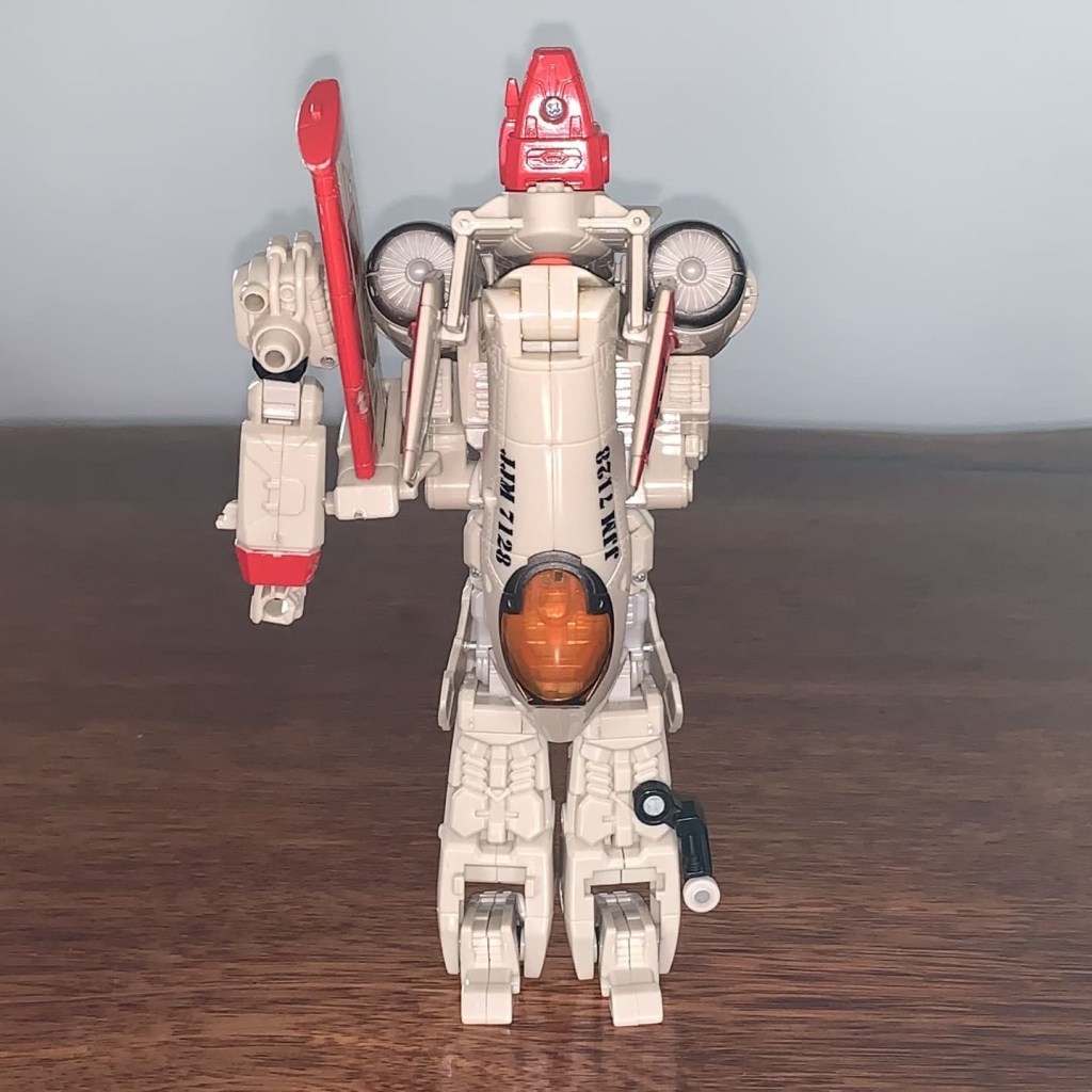 There’s a ton of playability in jet mode. He has working landing gear that rolls on top of his “electronic lights and sounds” that still work in this mode.